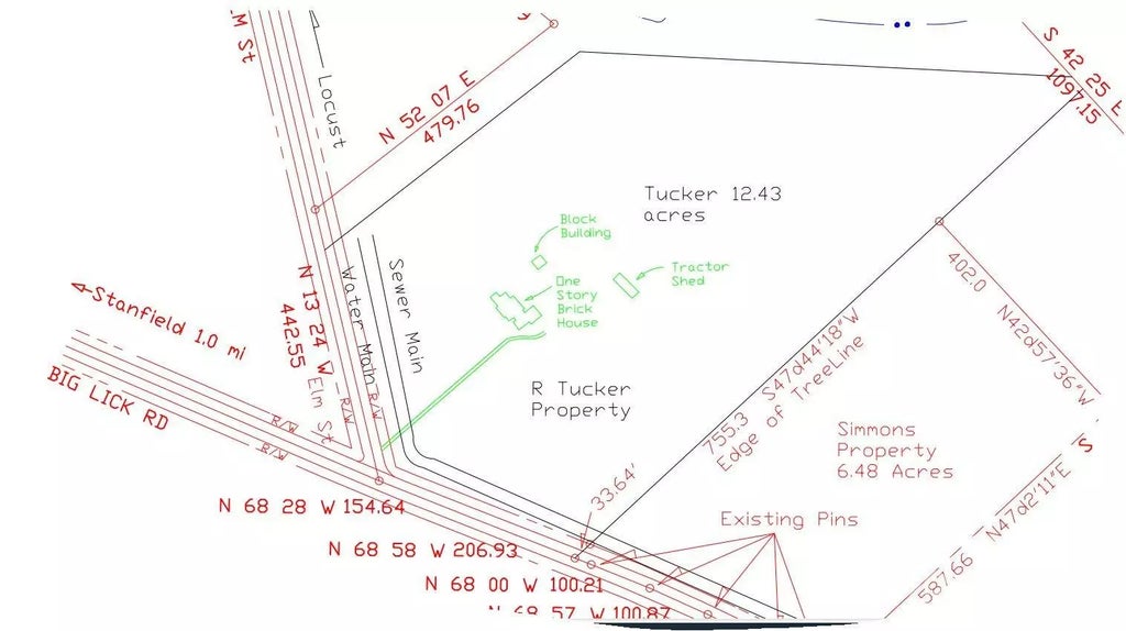 EXCELLENT LOCATION FOR YOUR NEW BUSINESS. 12.43+/- acres plus brick house built in 1940.. This 12.43+/- acres will to be surveyed out of the larger parcel. 1,790 Sq foot House being sold in "AS IS" condition and at no value. Value is in the land. Land is located outside city of Stanfield. Corner of Elm Street and Big Lick Roads. Owner feels it would be an excellent location for business such as Convenient Store, gas station, or the business of your choosing. Land would need to rezoned for commercial if used for that purpose. PLEASE DO NOT GO ONTO PROPERTY WITHOUT AN APPOINTMENT. Public water and sewer runs by property. Will need approval from City of Stanfield to connect and will require payment of tap fees. Also 3 phase electric is available at road. SEE ATTACHED MAP DRAWING THAT SHOWS ACREAGE TO BE SURVEYED OUT OF WHOLE PARCEL. AGAIN, PLEASE DO NOT GO ON PROPERTY WITHOUT AN APPOINTMENT. NO SIGN. THANK YOU FOR YOUR INTEREST.