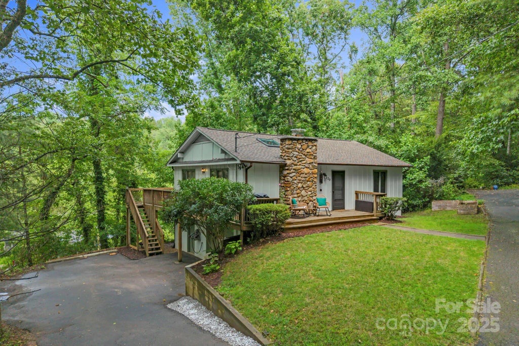 Turn-key perfection with beautiful mountain views—this North Asheville gem feels like a private treehouse retreat, yet it's just minutes from it all. Located in one of the area’s most coveted neighborhoods, it blends comfort, style, and convenience in a peaceful, wooded setting near Beaver Lake, Asheville Country Club, Downtown, and the Blue Ridge Parkway. The open floor plan centers around a striking stacked-stone fireplace. A fully renovated kitchen showcases quartz countertops, handcrafted Zellige tile backsplash, soft-close cabinetry, a workstation sink, and brand-new stainless steel appliances—designed for both everyday living and effortless entertaining. The bathrooms are thoughtfully updated with new vanities, fixtures, lighting, and glass shower doors. Additional upgrades include custom closet doors, designer lighting throughout, fresh interior paint, a radon mitigation system, and whole-house water filtration. Offering 3 bedrooms and 2.5 baths, including a flexible lower-level suite ideal for guests or a home office, there's space to adapt as life evolves. Step onto the wraparound deck to take in peaceful wooded surroundings and mountain views. Don't miss out on this MOVE-IN-Ready home.